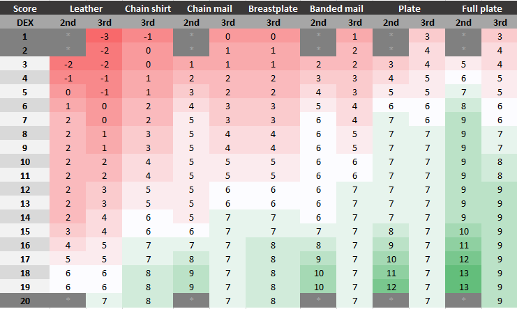 As with hit points, ability score bonuses were more easily available in 3rd edition than 2nd edition — however, those ability score bonuses were capped by the type of armor worn, particularly for heavier armor, so warriors could not take much advantage of this. Heavier armor now also reduced movement speed and applied an armor check penalty to many commonly-used skills.