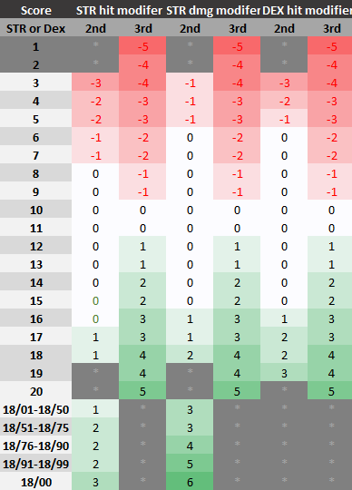 There are higher possible Strength damage bonuses in 2nd edition — but working within the core rules, “exceptional” strength scores were for warriors only. In 3rd edition, by contrast, a character with an 18 score in Strength got +4 to both hit and damage, whether a warrior or a non-warrior.