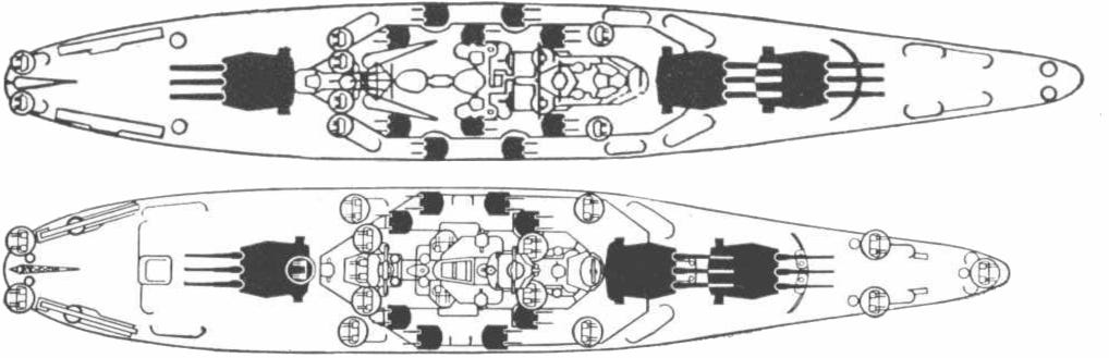 So why make the ship shorter? The reason for this was that the Navy wanted the South Dakota class to be a “balanced” design. The North Carolina had 16” guns and was designed to resist 14” gunfire. A “balanced” design would be able to resist 16” gunfire. Making the ship shorter reduced the area that needed to be armored, which meant that the armor could be made thicker within the same fixed 35,000 ton mass budget. Overall, the armor of the South Dakota class was about 10% thicker over the most critical areas of the ship.