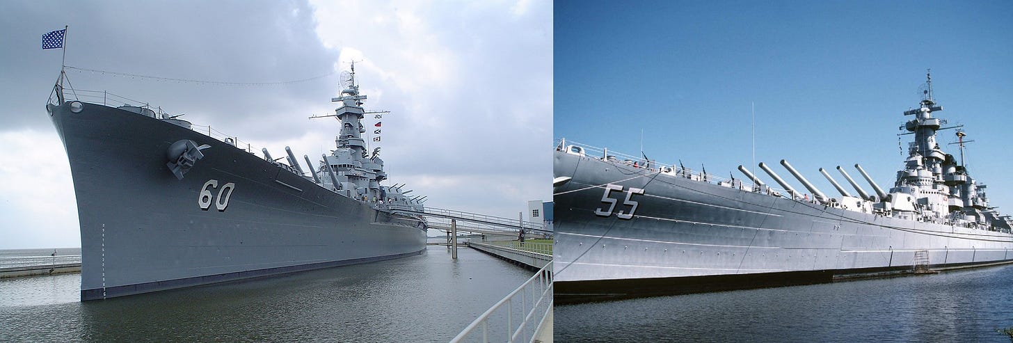 In service, the two North Carolina class ships earned 28 battle stars, with the USS North Carolina becoming the most decorated American battleship of World War II. The four ships of the South Dakota class, combined, earned 42 battle stars - only three times as many. None of these six ships ever dueled either of the two Japanese Nagato class battleships, which had the 16” guns the South Dakota’s improved armor scheme was designed to counter. All were targeted by Japanese torpedoes and aircraft, and they needed every inch of their metaphorical legs trying to keep up with fast-moving aircraft carriers.